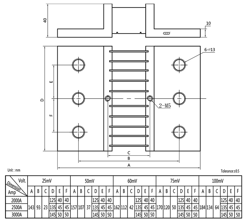 • .Temperature rise: Electrify the shunt with rated current for 2hr, test it after temperature rising stable, the temperature rise should be≤80K when the rated current under 100A; and should be ≤120K when the rated current higher than 100A.