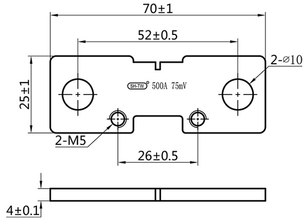 3)Temperature rise: Electrify the shunt with rated current for 2hr, test it after temperature rising stable, the temperature rise should be≤80K when the rated current under 100A; and should be ≤120K when the rated current higher than 100A.